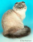 The Scottish Fold is a sweet, charming breed. She is an easy cat to live with and to care for. She is affectionate and is comfortable with all members of her family. Her tail should be handled gently. Some of these cats are known to develop stiffness in the tail that can cause pain if it is mishandled or accidentally handled in a rough manner.