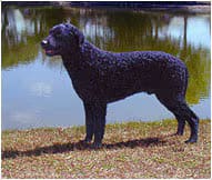 The curly-coated retriever is a working game dog that originated in England perhaps as long ago as the 1700s. Its exact ancestry has long been lost, but it probably stems from crosses of the old English water dog, Irish water spaniel, a small type of Newfoundland, and later, perhaps even poodle. True to their heritage, Curlies are great swimmers and hunters.