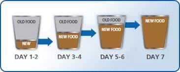 To help you with the switch and dog food transition, refer to the 7-Day Transition Schedule below or view this video.